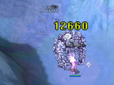 1匹と交戦中の私にさらにアイスタイタンが歩いてくる。タゲとりに行かなくても向こうから来てくれるなんてラッキー♪。そこへテレポで現れたローグ。「インディミ!!」 シューン!