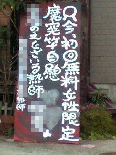 女性限定に突に竿に自慰・・・相談に乗って、俺の竿で慰めてやるぜ的な、何かそんなものを感じてしまうのですが。絶対怪しい店だろコレ。怪しいってか、騙す気満々の店だろコレ。
